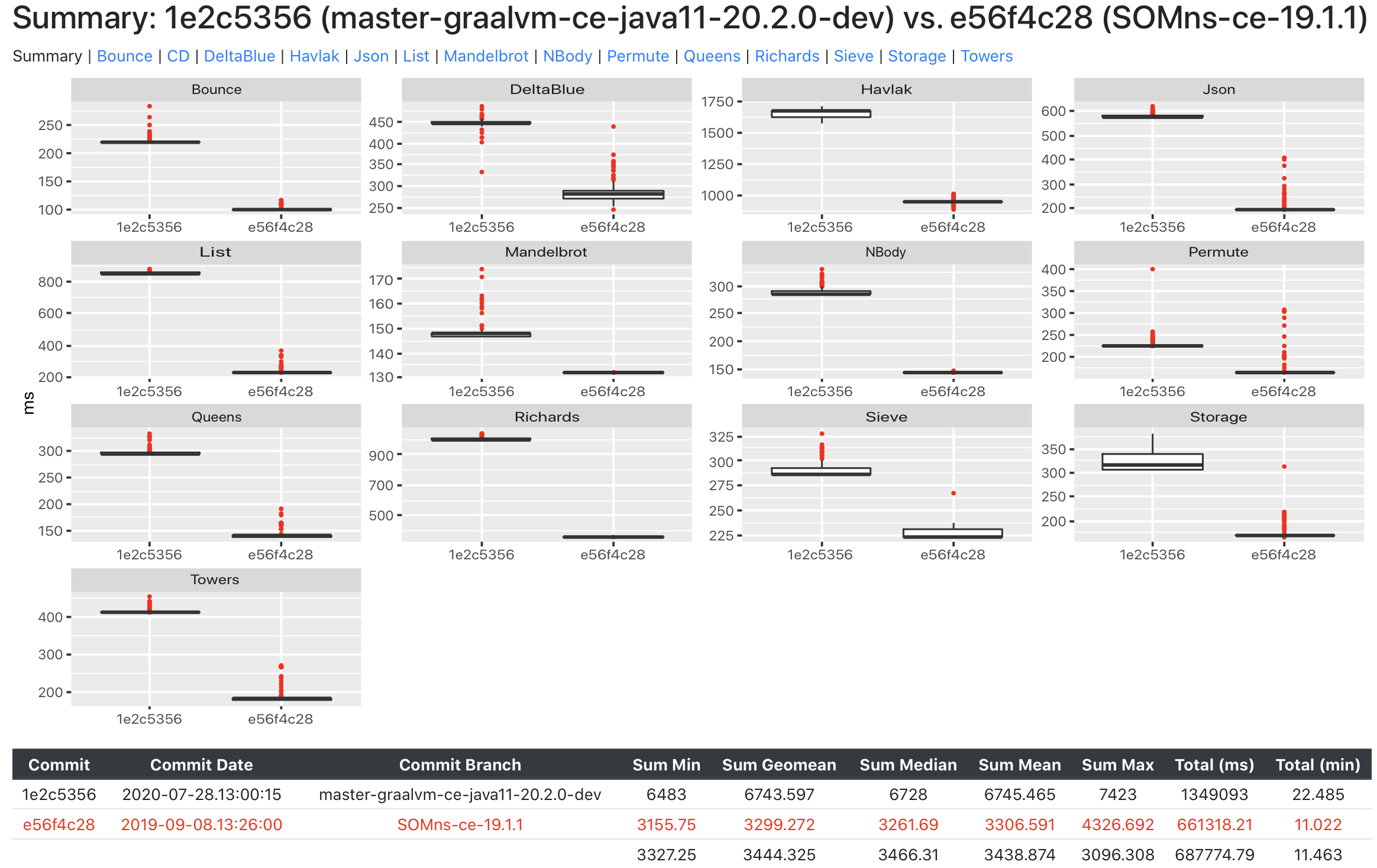 Is there an overview somewhere which allows comparison with fig. 4 of your ACM 2019 publication? Anyway in that publication SOMns using the same technology - as far as I understand - showed a completely different performance pattern; does this still apply, and what is/was the reason for this?